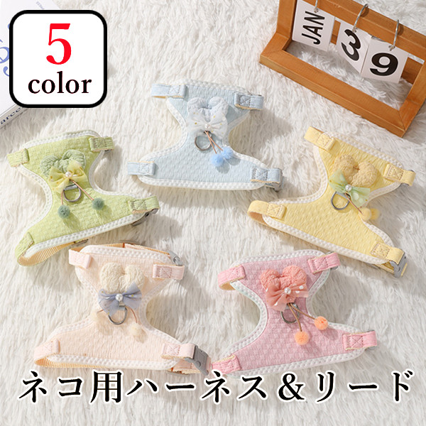 ネコ用ハーネスリードセット 5color 胴輪 ハーネス 猫 愛猫用 ソフト 猫 猫用ハーネス ねこ ネコ 子猫 抜けない