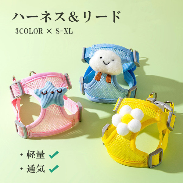 ハーネスリードセット 3color 胴輪 ハーネス 犬 ソフト 犬用ハーネス イヌ ドッグ 大型犬 抜けない 引っ張り防止 散歩用 お出かけ