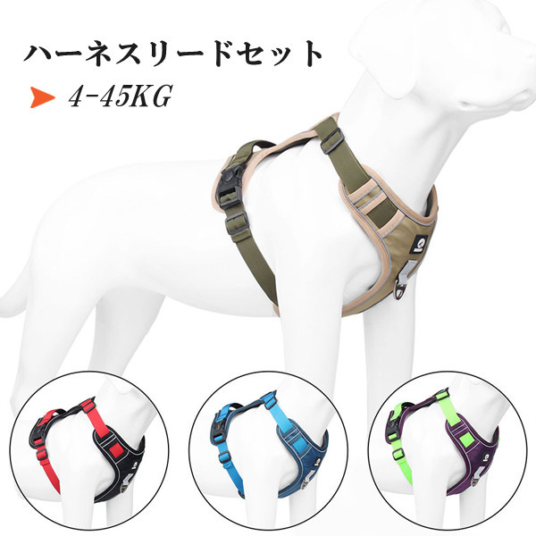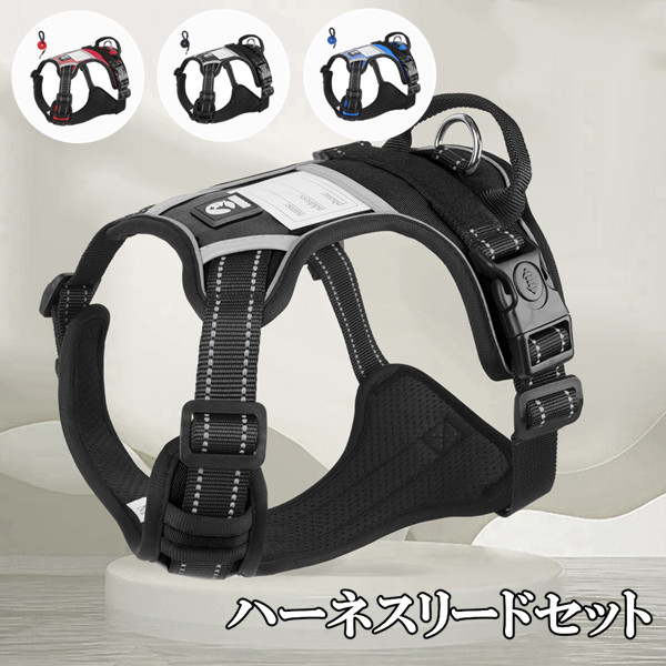 ハーネスリードセット 3 胴輪 ハーネス 犬 ソフト 犬用ハーネス イヌ ドッグ 大型犬 抜けない 引っ張り防止 散歩用 お出かけ