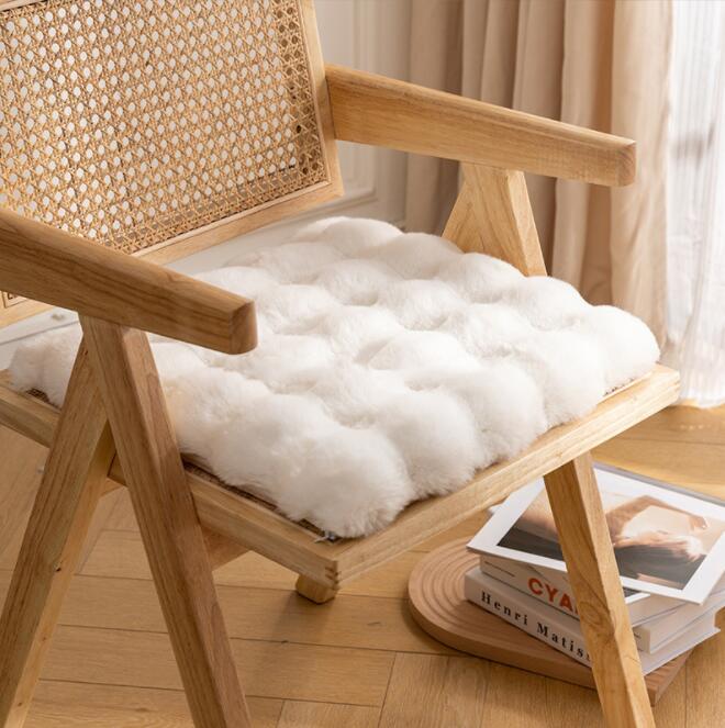 エコファーチェアパッド チェアマット 座布団 椅子 スツール ダイニングチェアクッション 姫系 すべり止め フェイクファー 北欧