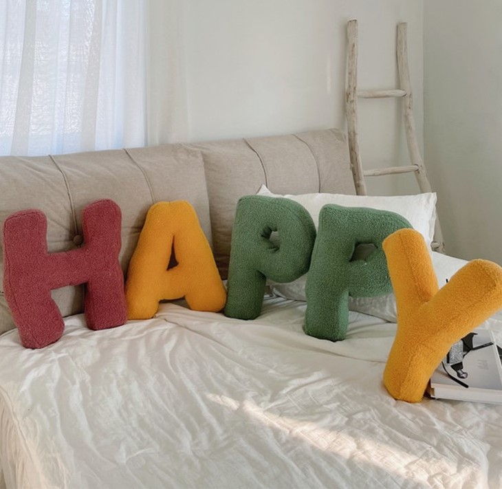 イニシャルクッション~38×30カラフル韓国北欧おしゃれ可愛いシンプルナチュラルソファーフロアクッションコットン綿椅子ボリューム大きい大きめ雑貨インテリアふわふわもこもこ文字英語ローマ字大