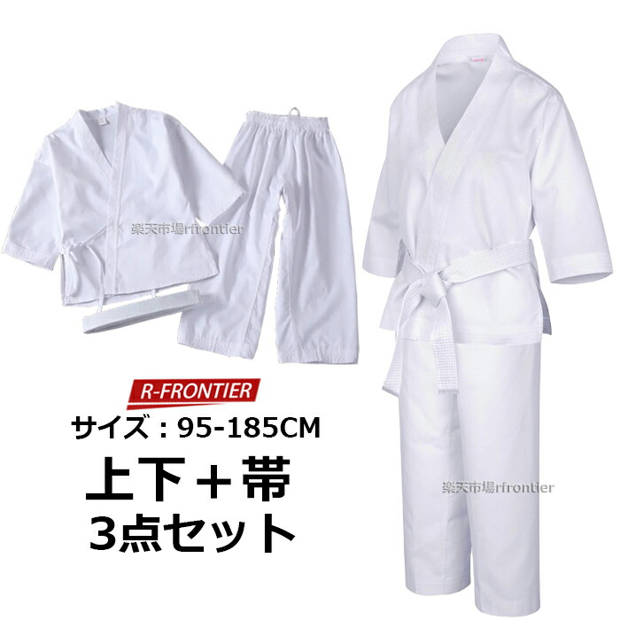 空手衣 空手着 上下帯3点セット 道着 上下白帯セット 道場 初心者 熟練者 稽古 子供 キッズ 白帯 学校 体育 授業 学校指定 中学生 高校生 高等学校 部活 ホワイト