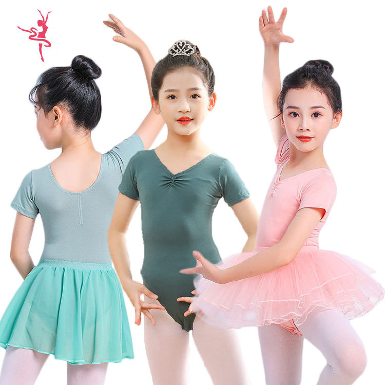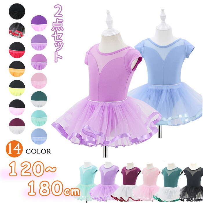 バレエ レオタード 子供 ジュニア セット スカート付き 14カラー 子供レオタード 衣装 かわいい ダンス 股下スナップ 女の子 女児 ジュニア 練習着 演出用 発表会 レッスン着 体操 半袖 袖あ