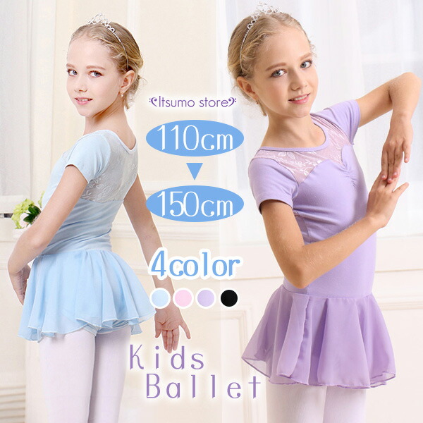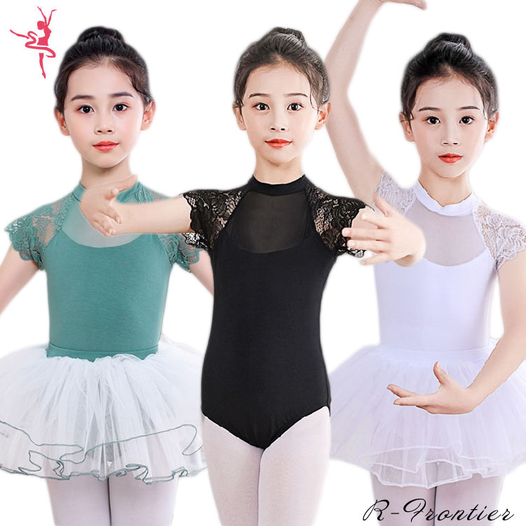 バレエ レオタード 子供 ジュニア セット スカート付き レース 黒 半袖 ジュニア コットン 綿 ストレッチ 伸縮 練習 レッスン着 新体操 水色 ブラック 黒 ピンク 公演 演出用 100 1