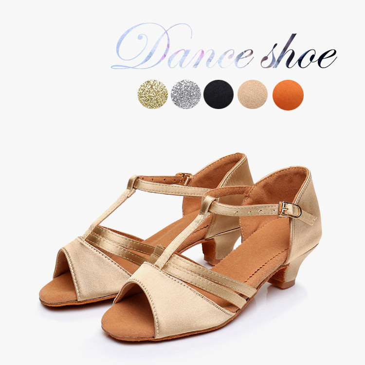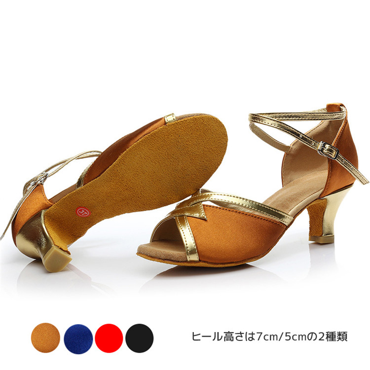 ラテンシューズ お試し 初心者の方向け タンゴ モダン ジャズ ラテン ダンスシューズ レディース 大人 子供 ゴールド 社交ダンス 3 4.5ヒール -370