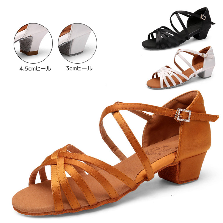 ダンスシューズ ラテンシューズ お試し 初心者の方向け タンゴ モダン ジャズ ラテン スクエアヒール レディース 大人 子供 ホワイト ブラウン 社交ダンス 3 4ヒール -363