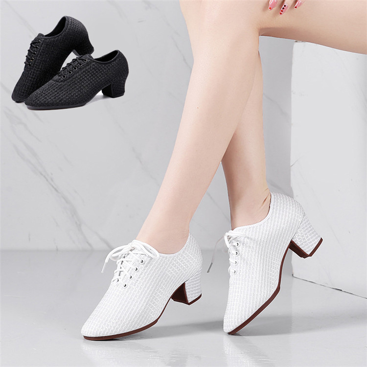 ララダンス ダンスシューズ レディース 大人 モダン ラテン サルサ タンゴ ジャズ ステージ 室外用 3.5cm 5cmヒール ダンス ワルツ 社交ダンス ホワイト ブラック wudao-404