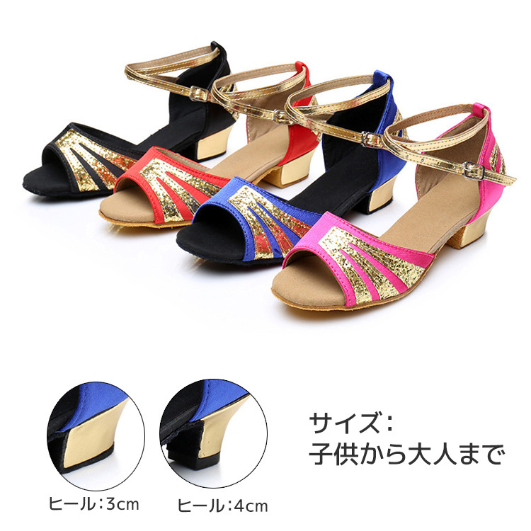 ラテンシューズ タンゴ モダン ジャズ ラテン ダンスシューズ レディース 大人 子供 女の子 ジャズダンス シューズ シンプル 社交ダンス スパンコール 可愛い 3ヒール -345