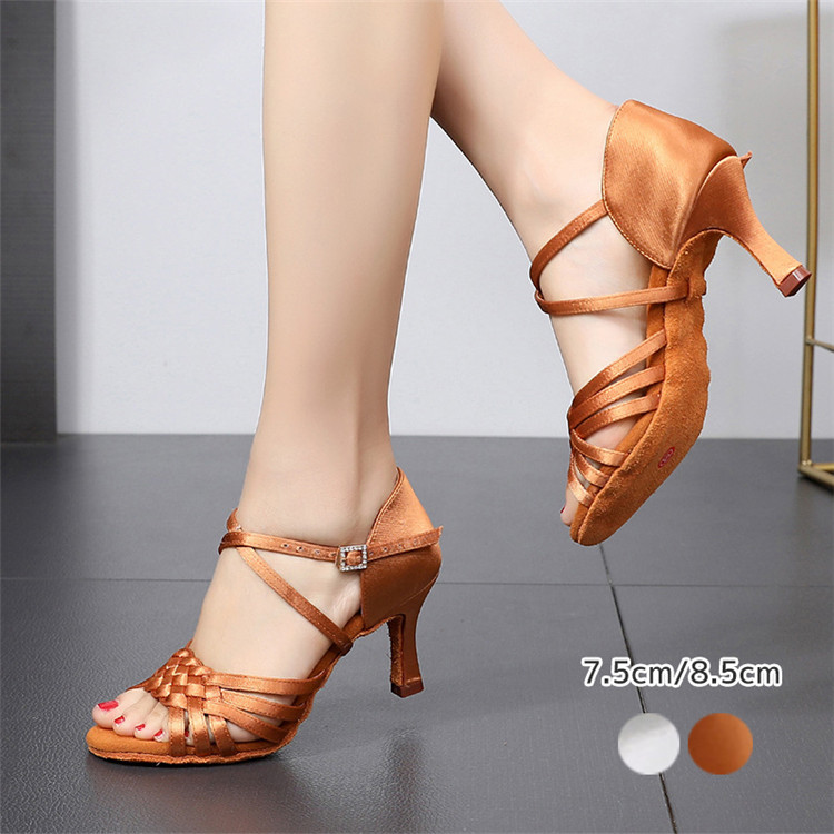 ラテンシューズ タンゴ モダン ジャズ ラテン レディース 大人 ブラウン シルバー ダンスシューズ フェミニン 社交ダンス 7.5cm 8.5cmヒール パーティー wudao-339