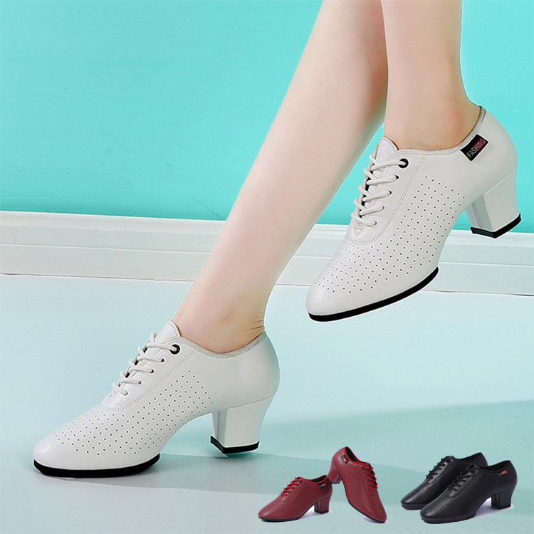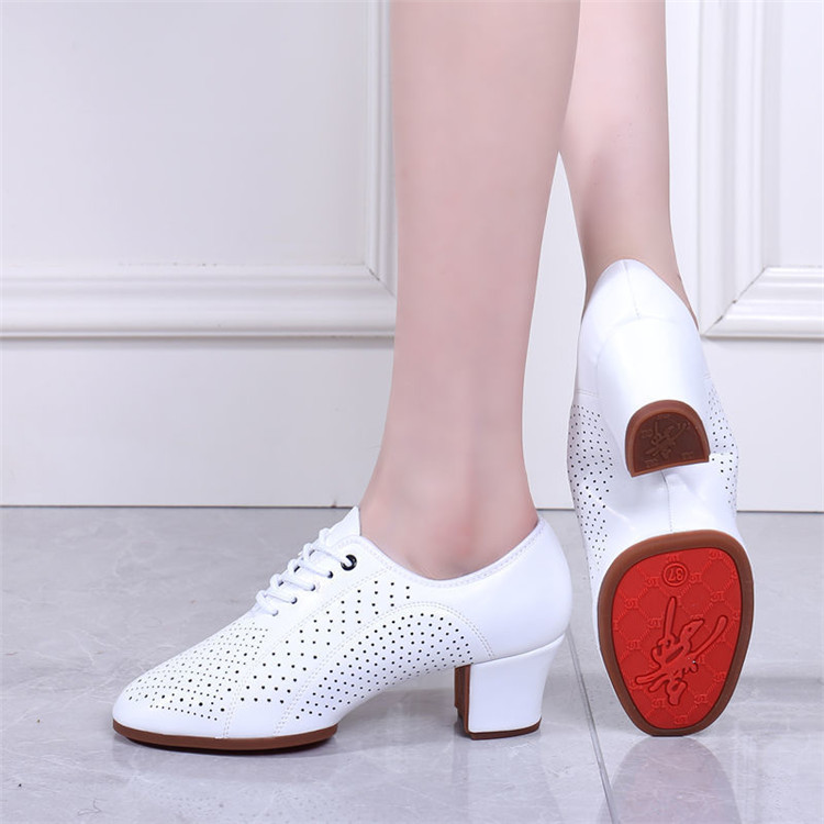 ララダンス ダンスシューズ レディース 大人 モダン ラテン サルサ タンゴ ジャズ ステージ 3.5 5ヒール ダンス ワルツ 社交ダンス ホワイト パンチング -407