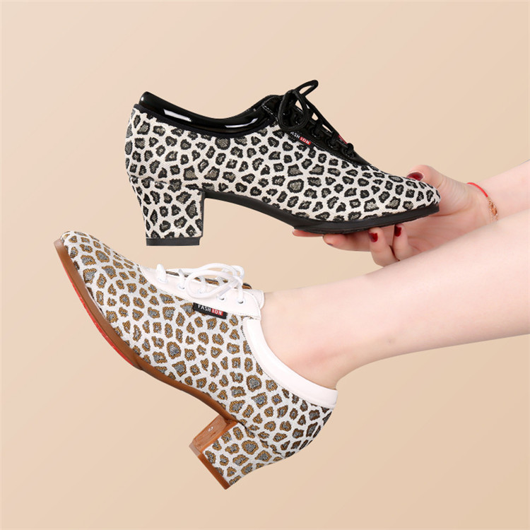 ララダンス ダンスシューズ レディース 大人 ダンス ワルツ 社交ダンス モダン ラテン サルサ タンゴ ジャズ ステージ ラバーソール ヒョウ柄 3.5cm 5cmヒール wudao-401