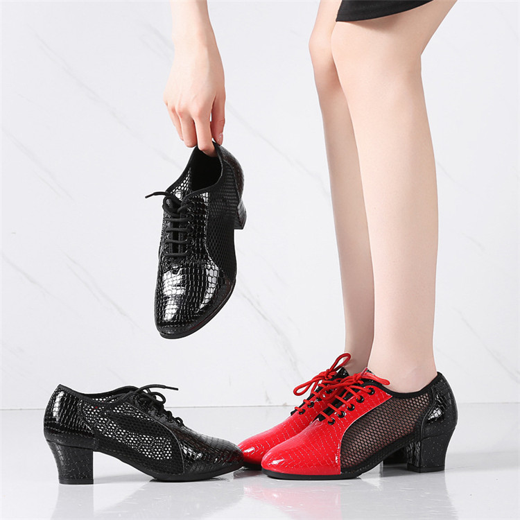 ララダンス ダンスシューズ レディース 大人 ダンス ワルツ 社交ダンス モダン ラテン サルサ タンゴ ジャズ ステージ ブラック レッド メッシュ 3.5cm 5cmヒール wudao-396