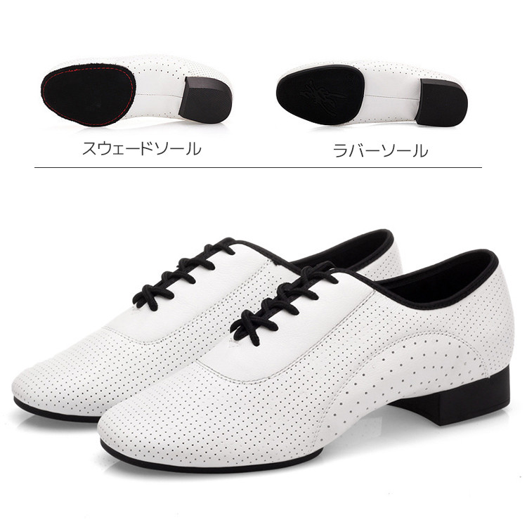 ララダンス ダンスシューズ メンズ 大人 ダンス ワルツ 社交ダンス モダン ラテン サルサ タンゴ ジャズ ステージ ホワイト パンチング -390