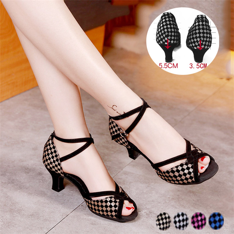 ラテンシューズ タンゴ モダン ジャズ ラテン ダンスシューズ チェック 社交ダンス レディース 女性 フェミニン 3.5 5.5cmヒール wudao-386