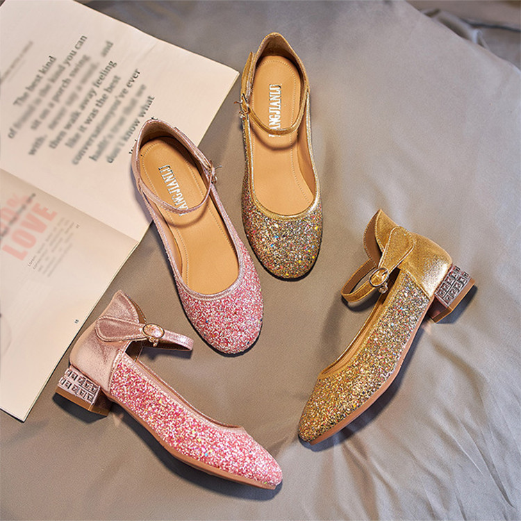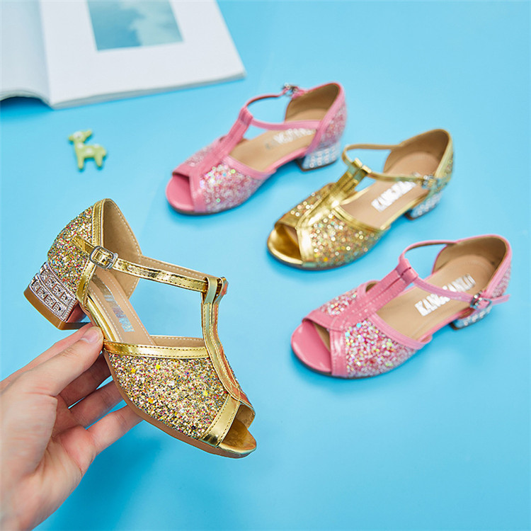 ラテンシューズ タンゴ モダン ジャズ ラテン ダンスシューズ 子供 社交ダンス お試し 初心者の方向け スクエアヒール 可愛い ピンク ゴールド キラキラ wudao-384