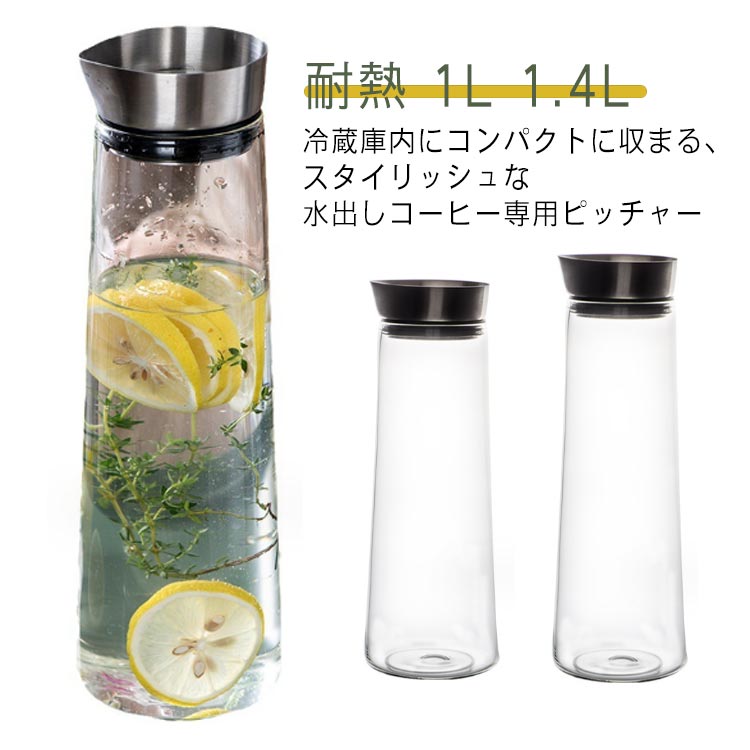 ガラス ピッチャー 水差し 冷水筒 耐熱ガラス ウォーターピッチャー ポット アイスティー ジュース ガラスお茶ポット お茶ボトルスリムポット