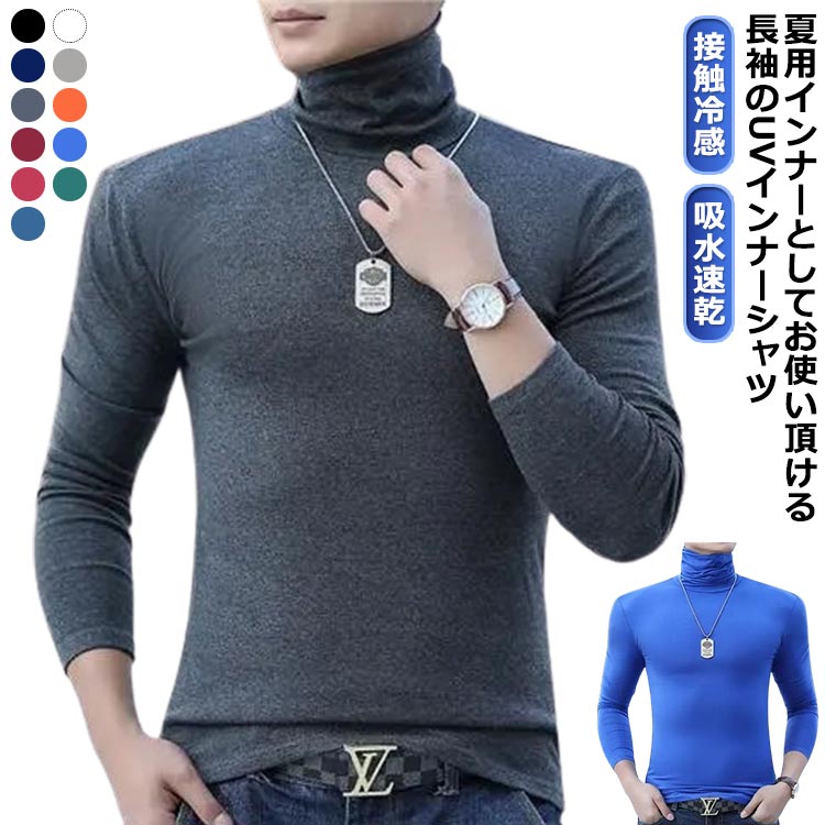 メンズ 接触冷感 インナーシャツ 長袖 UVカット ゴルフインナー シャツ 日焼け対策 ストレッチ ひんやり