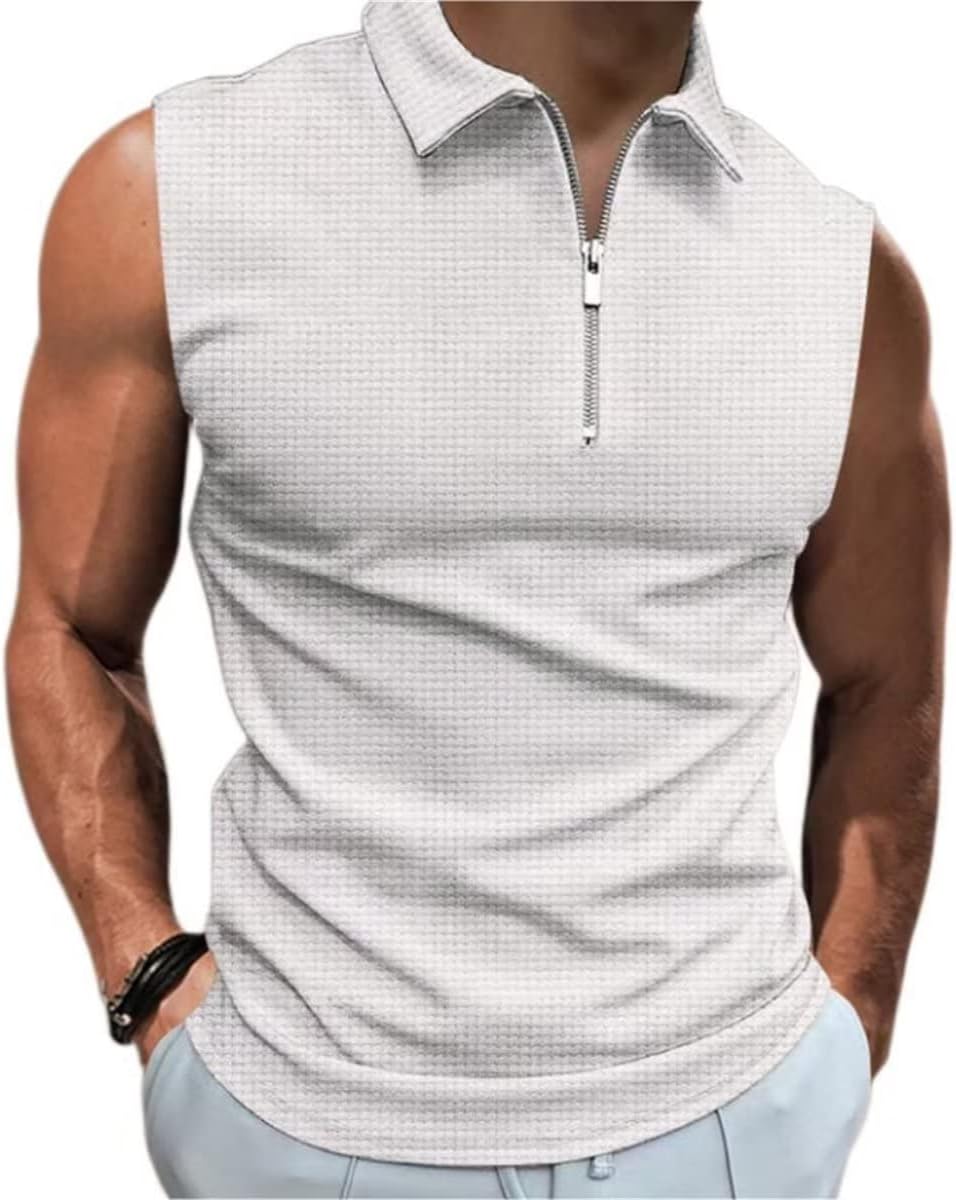 ゴルフ ポロシャツ メンズ ゴルフウェア 無地 ノースリーブ スポーツシャツ ハーフジップ ゴルフポロシャツ 作業着 袖なし ポロ tシャツ 人気 おしゃれ polo shirt 吸汗 速乾 メンズゴ