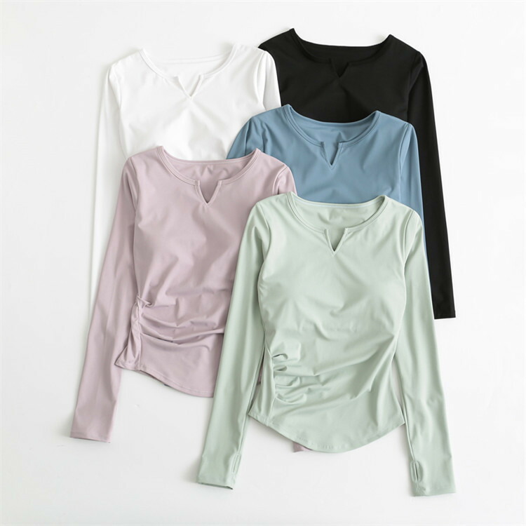 ヨガウェア ヨガ トップス 長袖 カップ付き ホットヨガ キーネック 指穴付き 暖かい 吸収速乾 冷房対策 快適 レディース おしゃれ かわいい スポーツウェア ピラティス ジム ダイエット