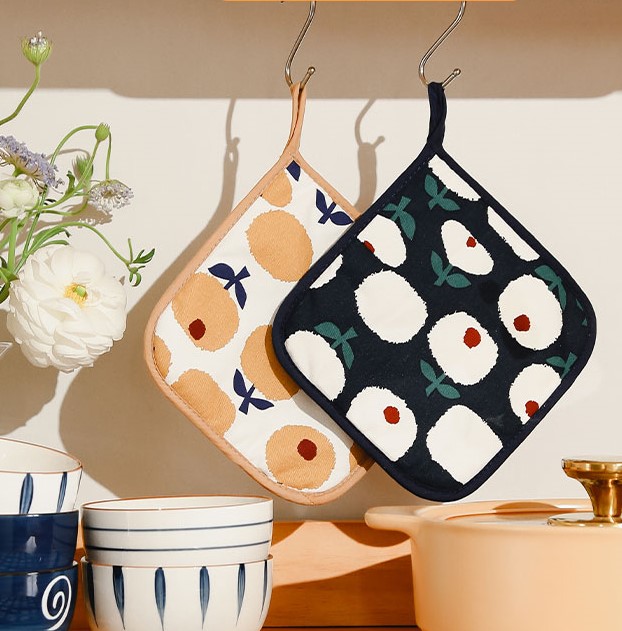 花柄鍋敷き2サイズ×4色鍋つかみ厚手フラワー韓国北欧雑貨壁掛耐熱おしゃれ可愛いミトンキッチン引っ掛け取っ手鍋掴みナチュラル丸四角鍋置きやかん置き鍋しきレッドネイビーブラウングレーレトロコットン綿