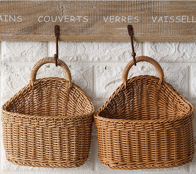 ラタンバスケット2色かご韓国雑貨インテリア北欧ディスプレイ収納小物入れ可愛いおしゃれブラウンシンプルアンティーク持ち手壁掛け取っ手ピクニックキッチンアジアンワンハンドルフルーツ食べ物野菜小さい大きい