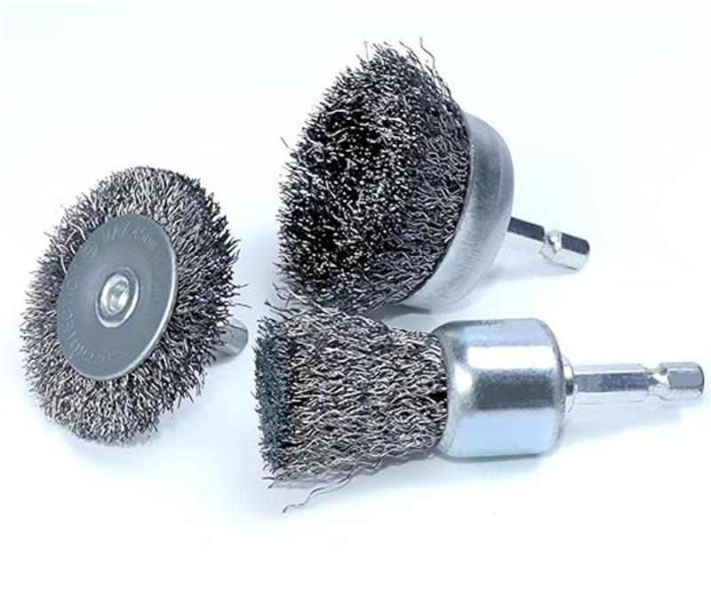六角軸ワイヤーブラシ カップブラシ ステンレス 3個セット,平面のさび ペンキ落としに花 ガーデン 工具 電動 エア工具用アクセサリー 研磨工具用アクセサリー 軸付研磨ブラシ