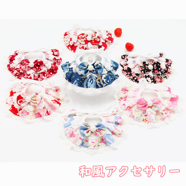 ペット用スタイ 和風 可愛い ワンちゃん 猫ちゃん 小型犬 猫 首飾り チョーカー アクセサリー おしゃれ フリル レース おめかし 写真撮り道具 小物