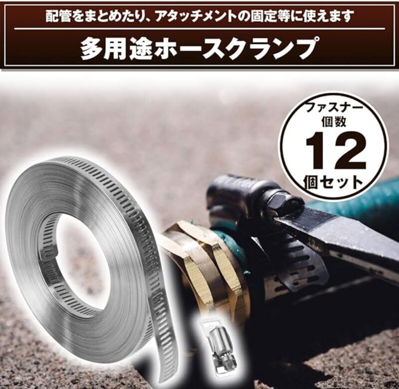 ホースクランプ 10m ファスナー12個付き 多用途 配管 ダクトクランプ 長さ調節 ステンレス鋼 屋内 屋外