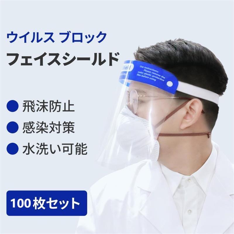 フェイスシールド フェイスガード 大人用 フェイスカバー 接客業 コンビニ 介護施設 医療 簡易式 男女兼用 水洗い 100個 透明シールド 防塵 目立たない 飛沫防止 軽量