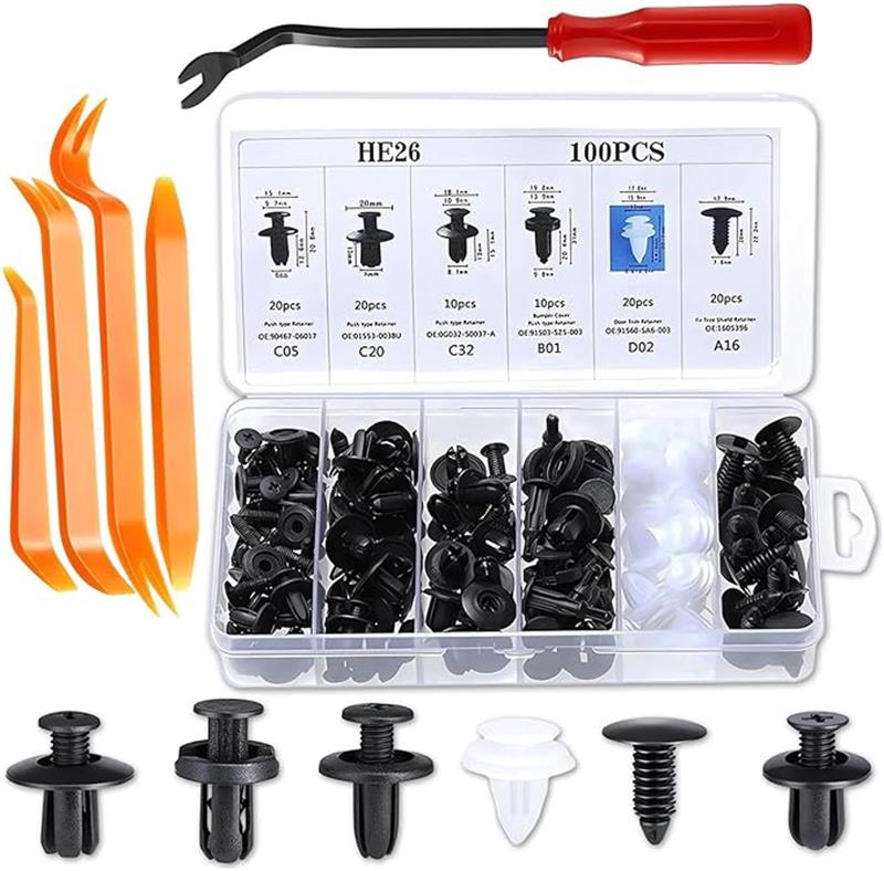 プラスチック製リベット 自動車フェンダー バンパークリップ 保持クリップ リムクリップ 押し込み式 取り付け簡単 固定用 ユニバーサル 6種 収納ボックス付き 100個セット+工具