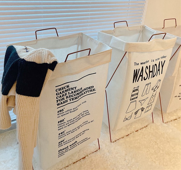 ランドリーバスケット4デザイン韓国インテリアロゴシンプル北欧大きい大容量折りたたみスリム洗濯かごおしゃれかわいいナチュラルワゴンモノトーン白ホワイトコットン布綿麻洗濯もの収納かご四角スクエア