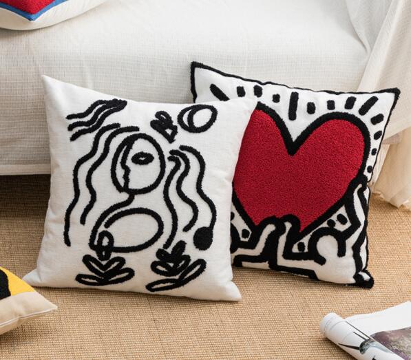 ハート柄クッション2色クッションカバーカバー黒ブラック白ホワイトもこもこ大きい大きめ45cm×45cm北欧おしゃれ可愛いデザイン洗える四角正方形韓国雑貨インテリア北欧ふわふわレトロ総柄