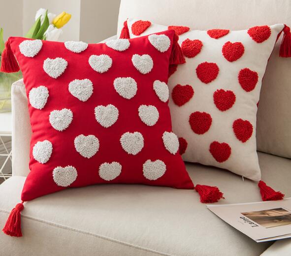 ハートクッションクッションカバーカバー白ホワイトレッド赤もこもこ大きい大きめ45×45北欧おしゃれ可愛いデザイン洗える四角正方形韓国雑貨インテリア北欧ふわふわフリンジ刺繍