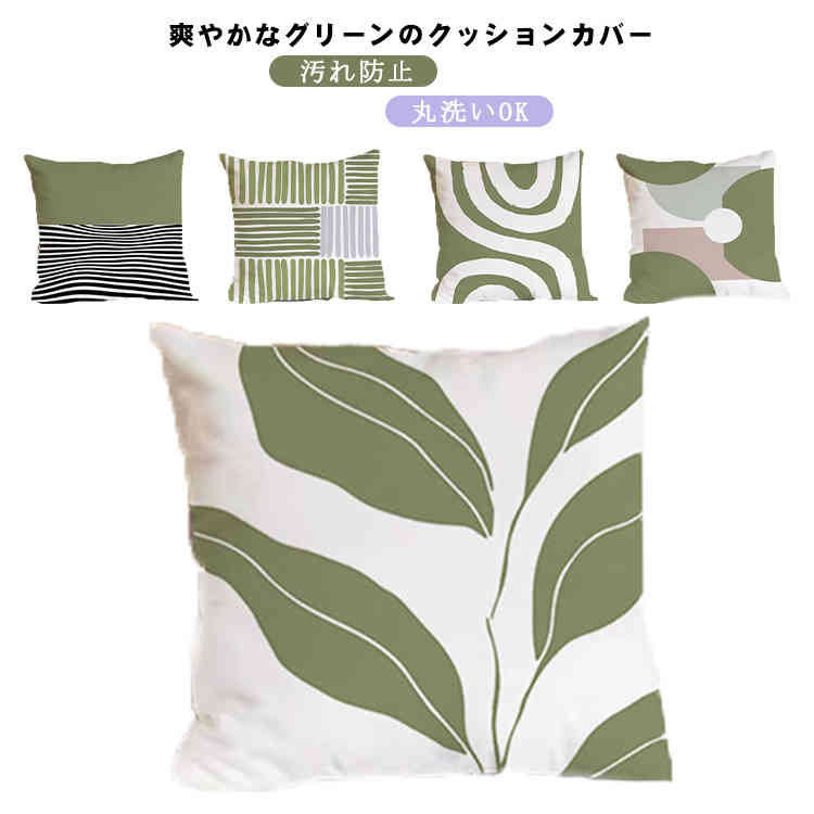 クッションカバー 45X45cm 40x40cm 背当てカバー 座布団カバー 角型 綿 コットン おしゃれ グリーン ストライプ柄 植物柄 幾何柄 替えカバー 汚れ防止 丸洗いOK 模様替え インテリ