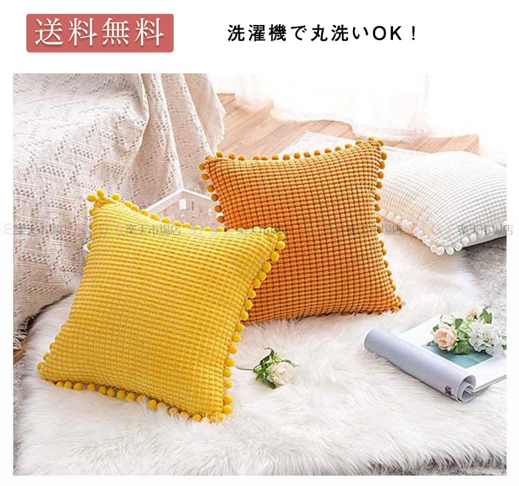 クッションカバー カラバリ 洗濯機丸洗い クッション ファブリック ソファ 無地 45×45 柔らかい おしゃれ 新生活 水洗い 汚れ防止 多目的カバー 丸洗い