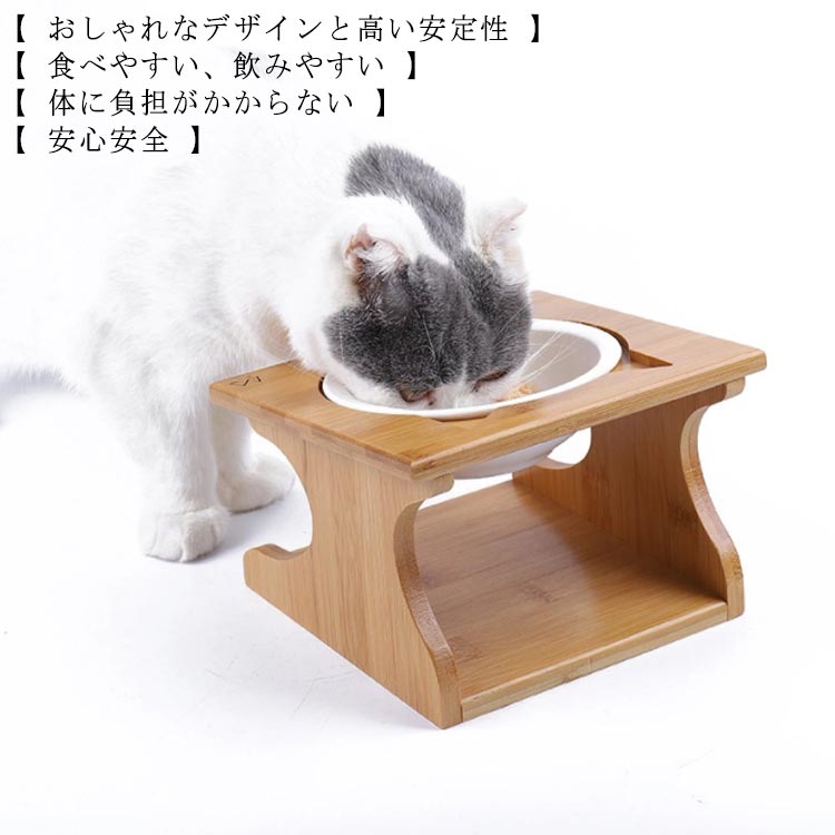 ペット食器台 フードスタンド 猫 食器台 ご飯 フードボウル 木製 餌入れ スタンド 食器テーブル 陶器皿付き 傾斜 台 猫エサ入れ