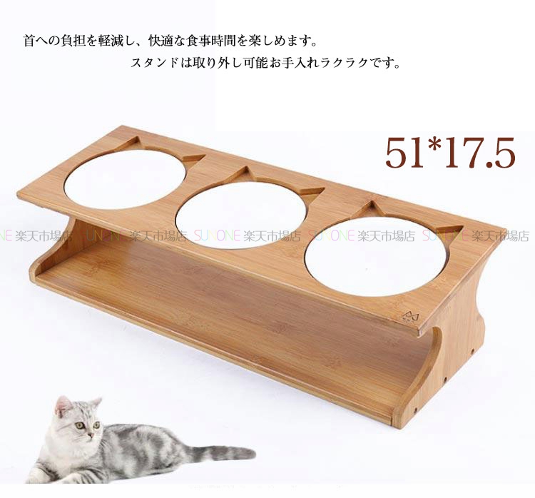 豪華三碗セット ペット食器台 ペット食事台 ペット食器 フードボウル フードボウルスタンド 木 ウッド 木製 陶器 餌入れ スタンド フードスタンド 猫 食器台