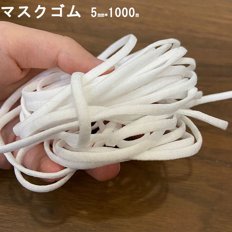 マスク用ゴム 約5MM×1000M マスク ゴム 痛くない マスクゴム 白 ホワイト 手作りマスク ハンドメイド マスク 手作り マスク紐 マスクごむ マスク用ゴム紐 手作り