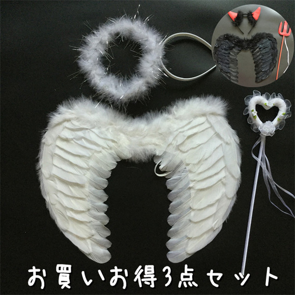 翼 カチューシャ 魔法棒 3点セット 子供 大人 小道具 演出 撮影ホビー コスプレ 変装 仮装 コスチューム一式