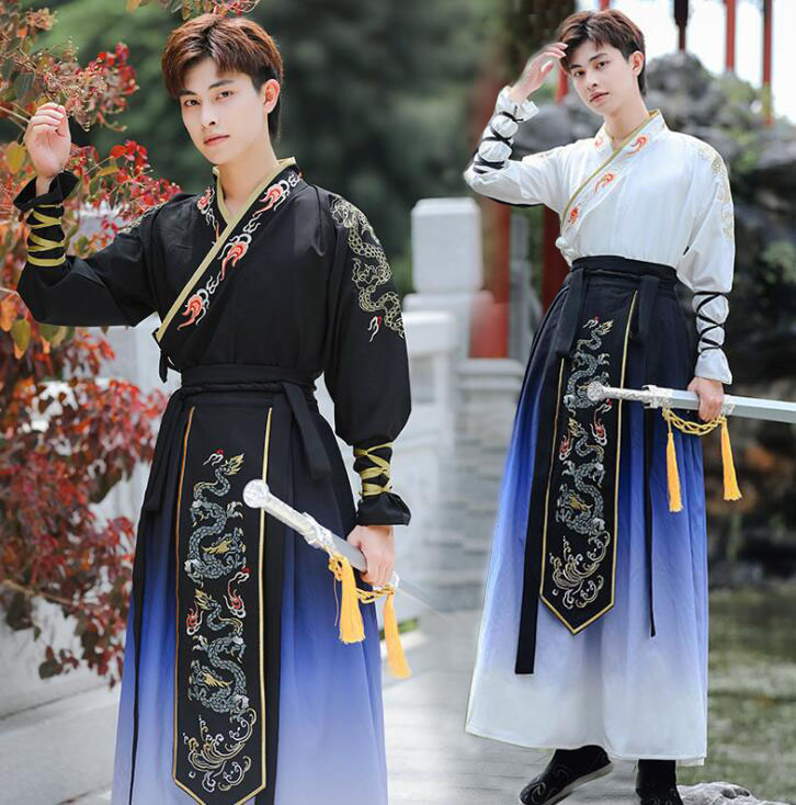 ハロウィーン イベント 学園祭 中華服 グラデーション チャイナ服 メンズ 漢服 カンフー衣装 大人 華流コスチューム 仮装 変装 交差 おしゃれ チャイナドレス 中華コスプレ衣装
