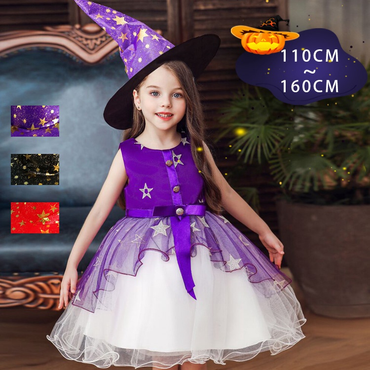 ハロウィン 衣装 子供 子供ドレス ハロウィン コスプレ 可愛い コスチューム ワンピース コスプレ衣装 ドレス 120cm ハロウィン 女の子 魔女 110cm 130cm 140cm 150cm