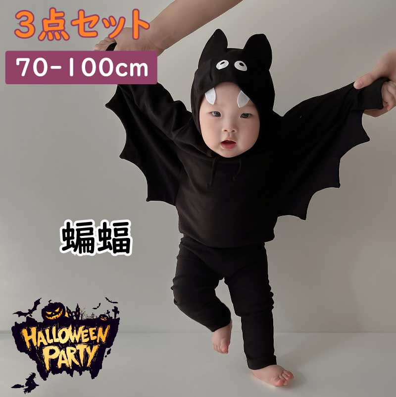 ハロウィン ベビー 仮装 男の子 蝙蝠 動物 女の子 キッズ 子供 帽子セット 衣装 悪魔 ハロウィーン 変身 なりきり トップス 長袖シャツ ズボン ベビー服 コスチューム コスプレ 写真撮影 記念