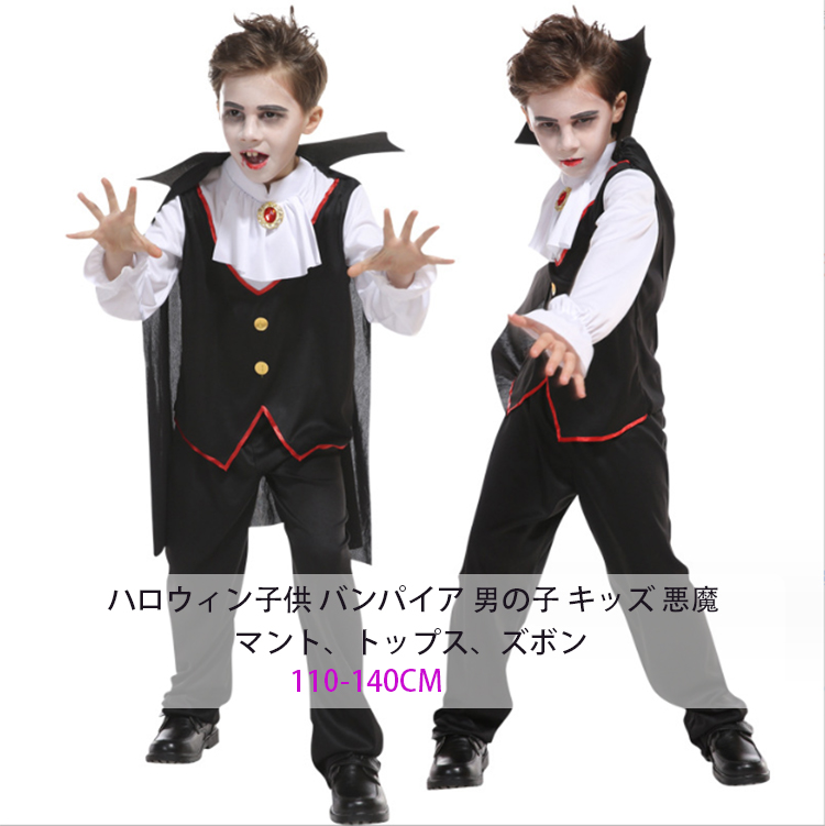 ハロウィン コスプレ 子供 バンパイア 男の子 キッズ 悪魔 ハロウィン ジュニア 発表会 衣装 伯爵 仮装 子供用 吸血鬼 ヴァンパイア 舞台衣装 マント クリスマス