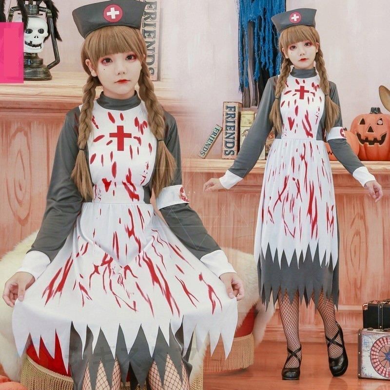 ハロウィン 大人用 コスプレ衣装 恐怖の看護師ゾンビ服 ヴァンパイア血なまぐさいメイドスーツ 女の子