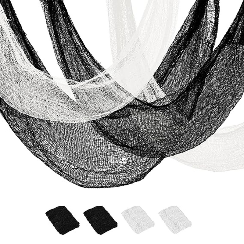 ハロウィン 飾り 蜘蛛の巣 黒 カーテン 白 カーテン お化け屋敷 不気味 ハロウィーン 装飾 布 簡単 怖いガーゼ布 玄関 屋外 壁飾り パーティー 仮装 道具 76cm×182cm 4枚