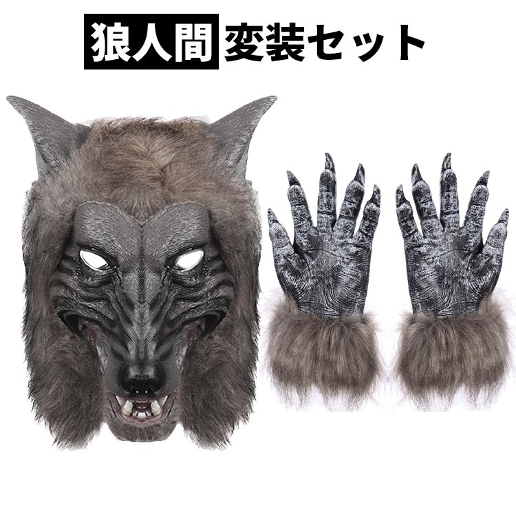 狼人間 狼男 ウェアウルフ ワーウルフ 人狼 狼女 ハロウィン Halloween コスプレ 仮装 フェイスマスク 目出し帽 グローブ 手袋 モンスター 獣人 かぎづめ 鉤爪 怖い 大人用 ハロウィン
