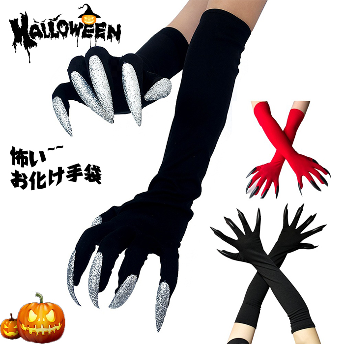 ハロウィン コスチューム 手袋 お化け指の爪 グローブ アームカバー 骨組み 仮装 怖い風 変装パーティー 普段使い 黒 秋冬 ハロウィーングッズ