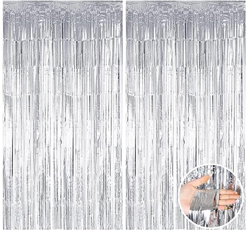 タッセルカーテン 2個セット 100*200 キラキラ フリンジカーテン 背景 明るい光沢 誕生日 結婚式 忘年会 パーティー 装飾 華やかな金属感 お部屋の装飾 小道具