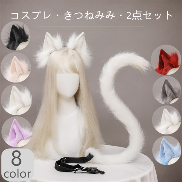 仮装 COSPLAY 狐耳 コスプレ パーティー 尻尾付き 2点セット カチューシャ 生放送 獣耳 女の子 女性 可愛い かわいい イベント キツネ 動物 キツネ耳 衣装 学園祭