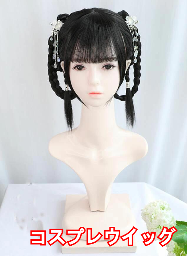 コスプレウイッグ ウイッグ かつら フルウイッグ 頭にかぶる 文化祭 学園祭 ハロウィン イベント 仮装 変装 ウイッグ レディース 三つ編 前髪あり ロリータ服用ウイッグ